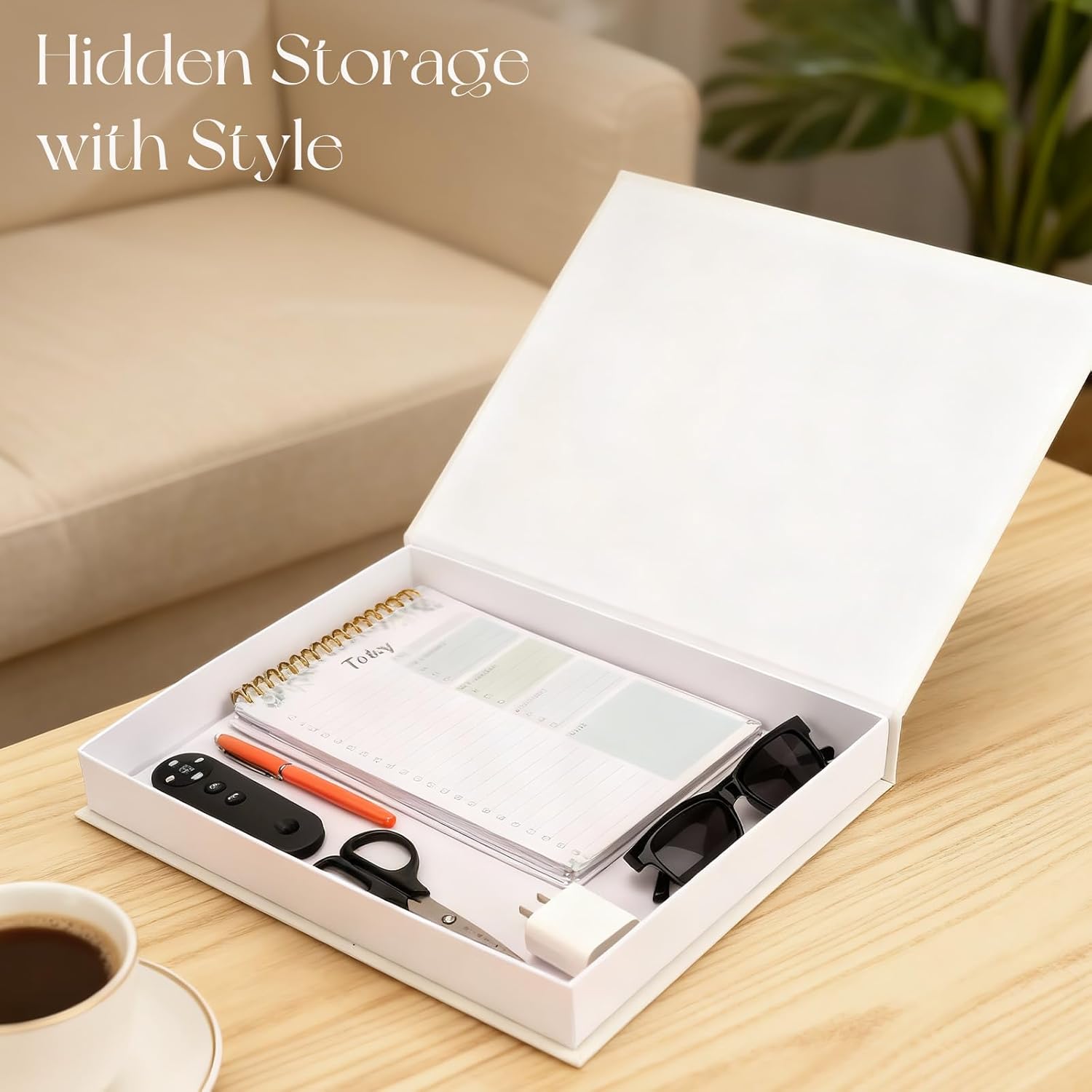 Decorative Concrete Tray & Book Set - Home Decor Scalloped Tray & Linen Storage Box for Coffee Table, Bookshelf, or Dining Room - Modern & Functional Housewarming Gift (Green+Beige)