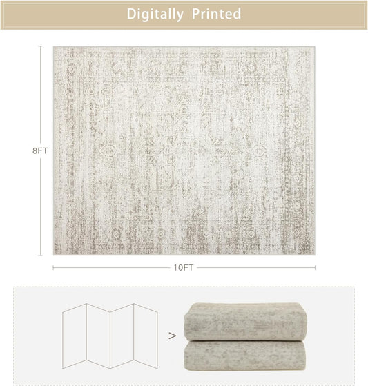 Washable Rugs 8x10 Area Rugs for Living Room,Ultra Soft Faux Wool Retro Rugs for Bedroom,Dining Room,Non Slip&Non-Shedding Low Pile Vintage Print Rug Indoor Large Carpets for Home Office Decor