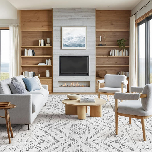 8x10 Area Rug for Living Room Moroccan Washable Rugs Non Slip Indoor Floor Carpet Foldable Large Soft Area Rug for Dining Room Bedroom with Low Pile(Grey,8'x10')