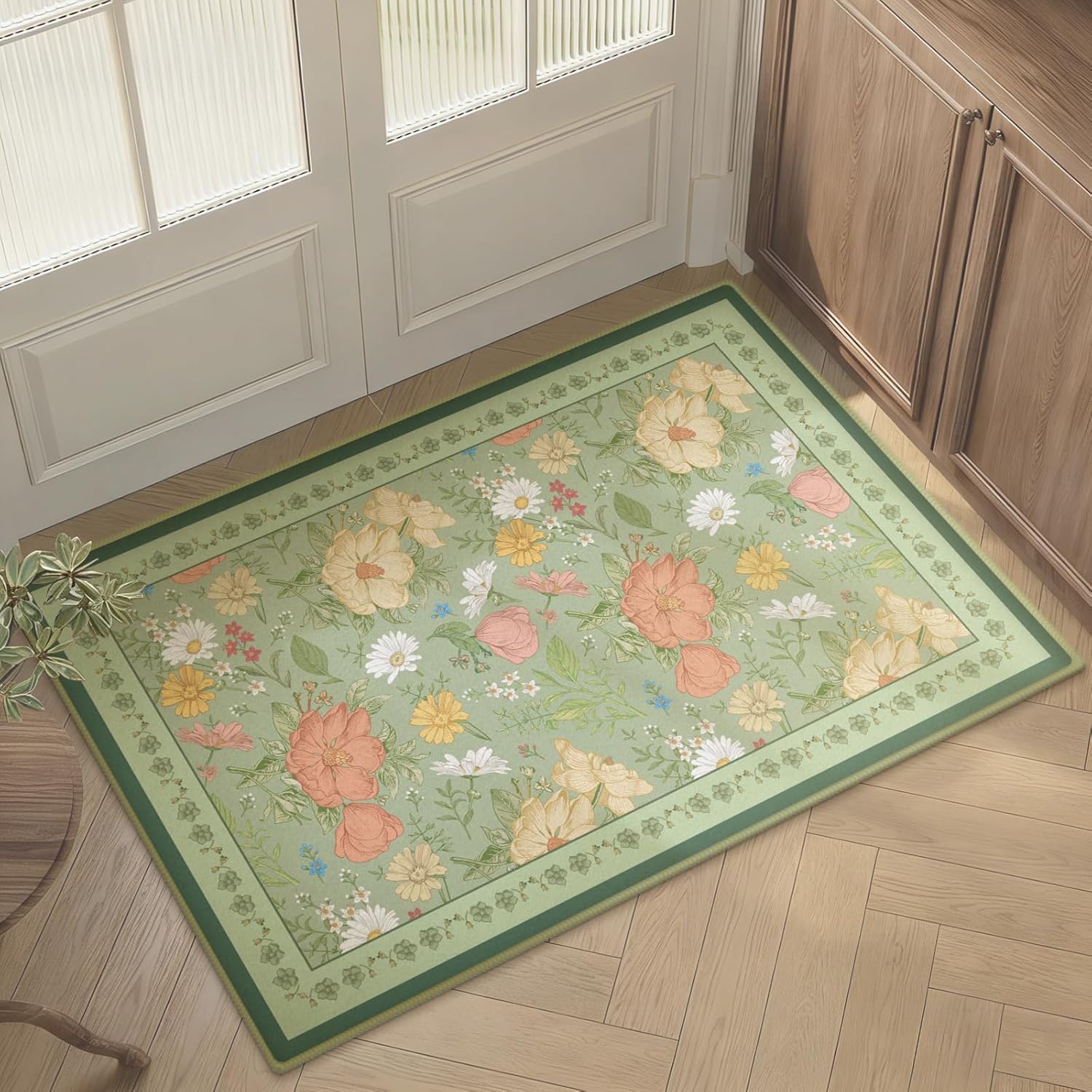 2x3 Entryway Rug Small Door Mat Indoor Entrance Machine Washable Boho Floral Area Rug Non-Slip Low Pile Throw Rugs for Entryway, Kitchen, Bedroom, Bathroom, Front Door Indoor Entrance, Entry